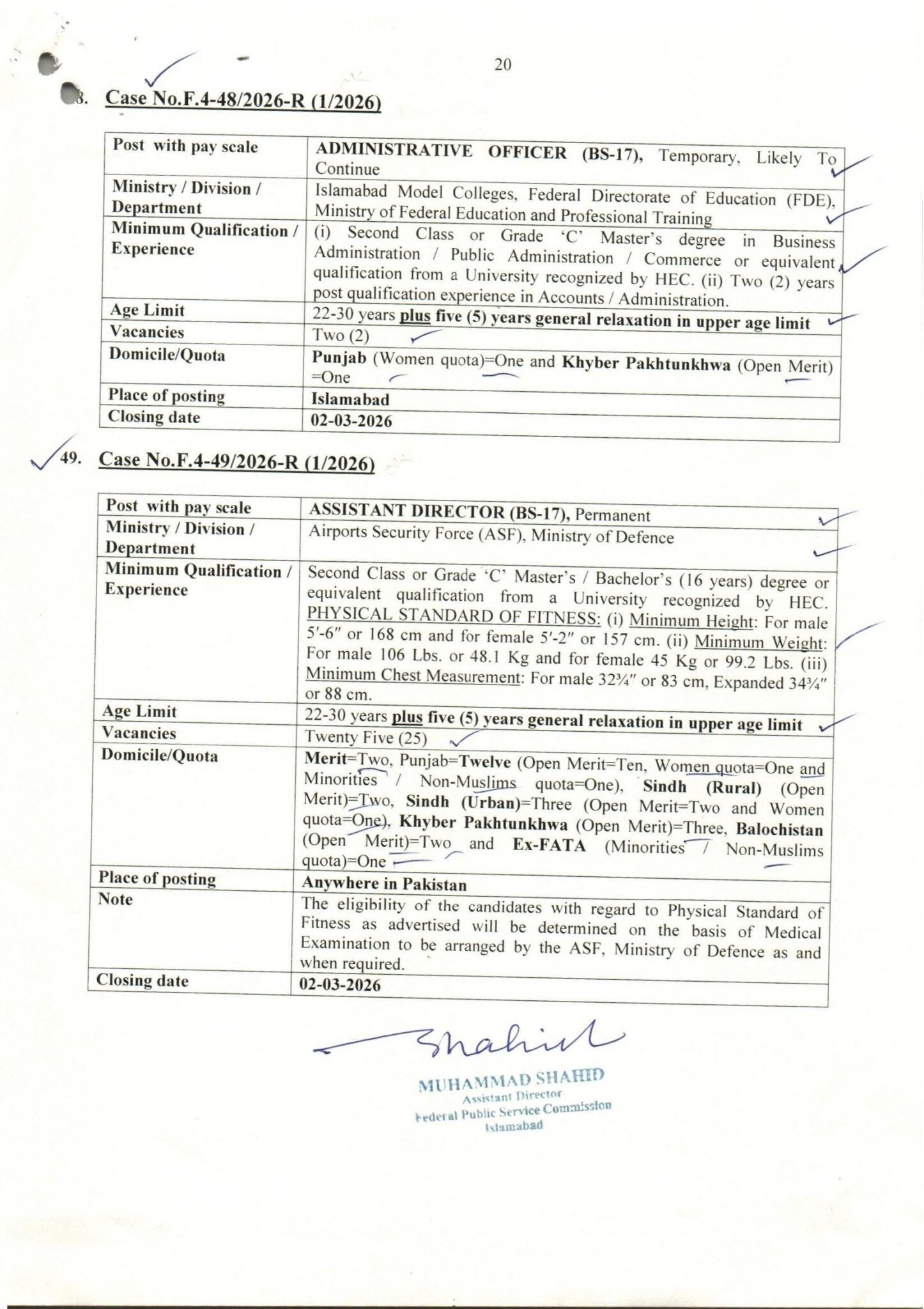 Please note that the deadline to submit online applications is March 02, 2026. Applications after the due date will not be entertained by Airport Security Force/FPSC Recruitment Authorities.