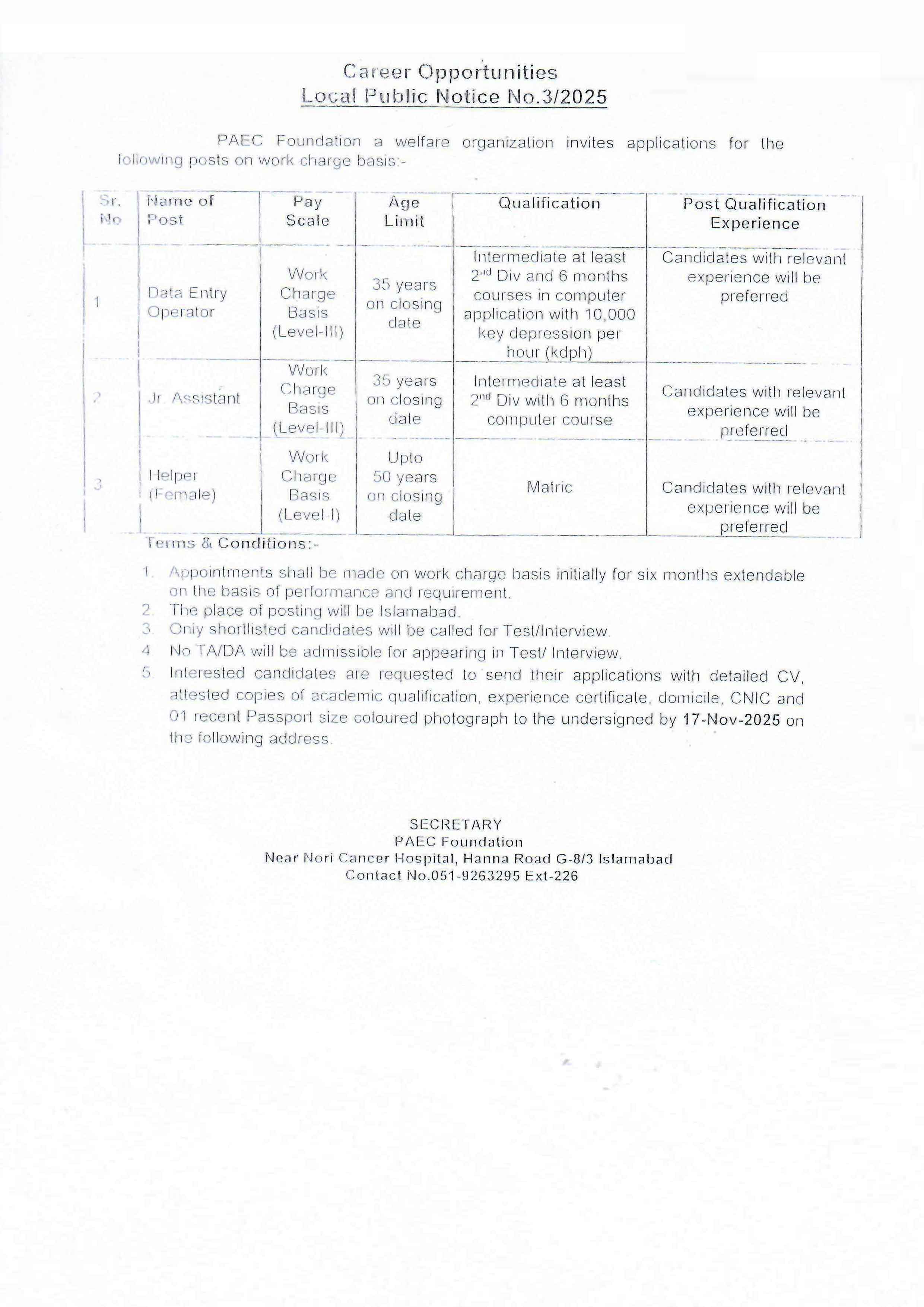 The Pakistan Atomic Energy Commission PAEC Jobs 2025 for Assistant Manager, Jr Manager, Assistant & Others Apply Online Published in Express Newspaper on 09 November 2025 and Last date to apply is 26 November 2025.