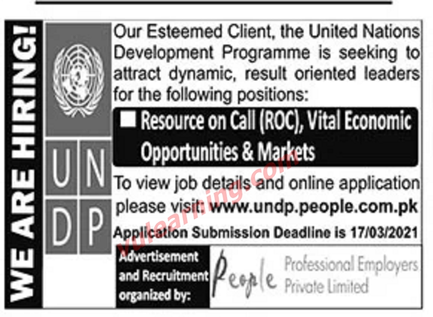 United Nations Development Programme (UNDP) Pakistan Jobs 2021 Apply Onlnie Latest Job Ad shown on this page is taken from The News Newspaper on 11-03-2021