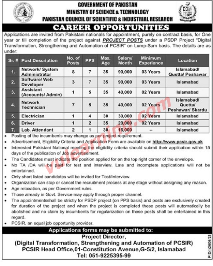 Advertisement of PCSIR Jobs October 2021 Application Form Pakistan Council of Scientific and Industrial Research Latest-116617