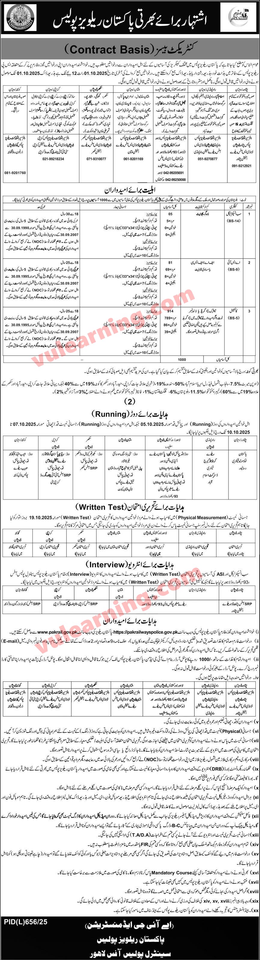 Pakistan Railways Police Jobs 2025 for 1000 Constables, ASI & Sub Inspectors Download Application Form Job Ad shown on this page is taken from Express Newspaper on 13-09-2025