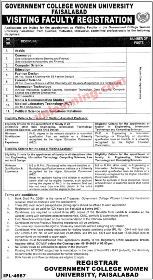 Advertisement of Government College Women University GCWF Faisalabad Jobs 2025 for Visiting Faculty -294701