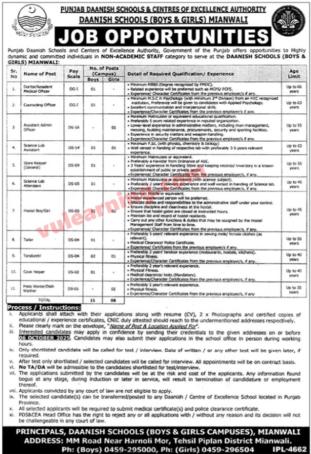 Punjab Daanish School (Boys & Girls) Mianwali Jobs 2025 for Non-Teaching Staff Job Ad shown on this page is taken from Jang Newspaper on 19-09-2025