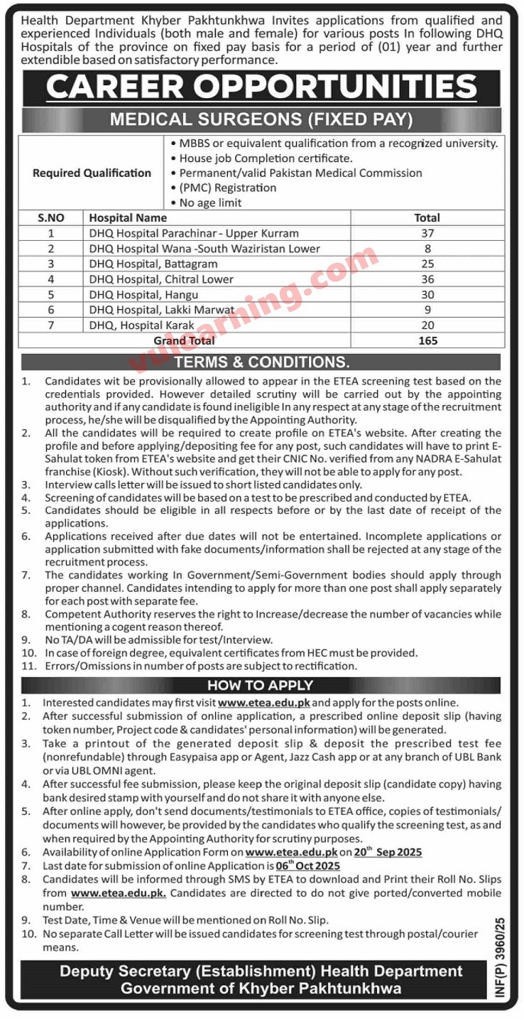 Health Department Khyber Pakhtunkhwa Jobs 2025 for Medical Surgeons Apply Online Job Ad shown on this page is taken from Express Newspaper on 19-09-2025