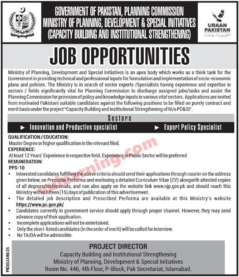 Ministry of Planning, Development & Special Initiatives Jobs 2025 for Experts / Specialists Job Ad shown on this page is taken from Express Newspaper on 19-09-2025