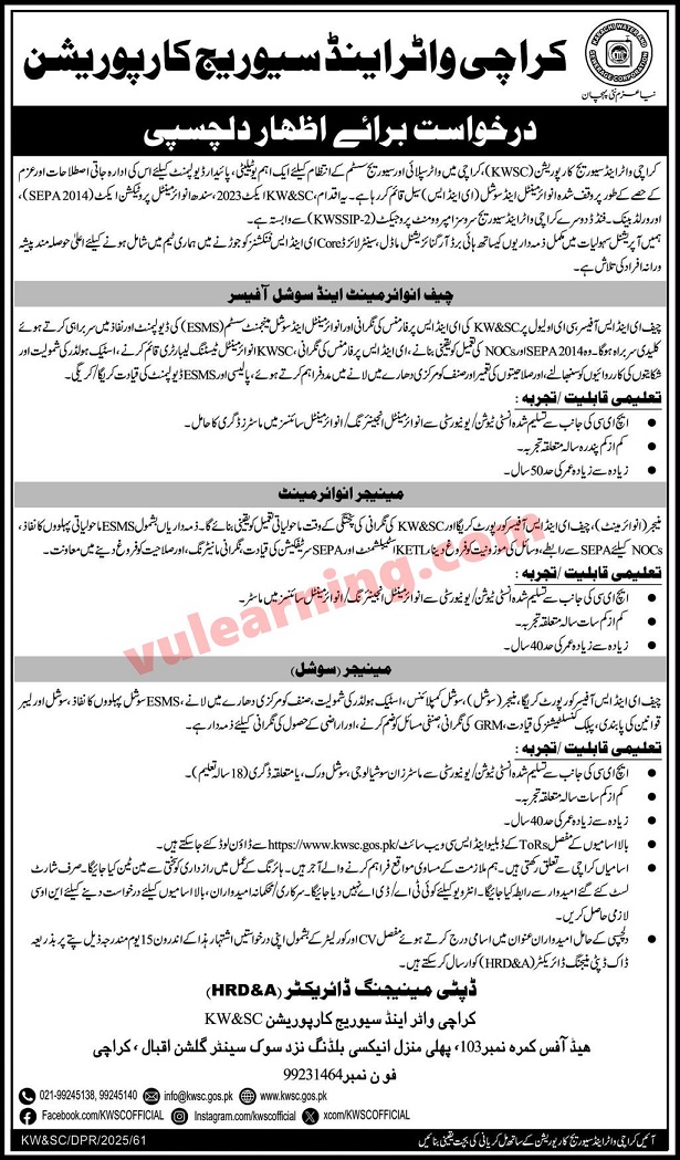Karachi Water & Sewerage Corporation KWSC Jobs 2025 for Managers & Others Job Ad shown on this page is taken from Express Newspaper on 18-09-2025
