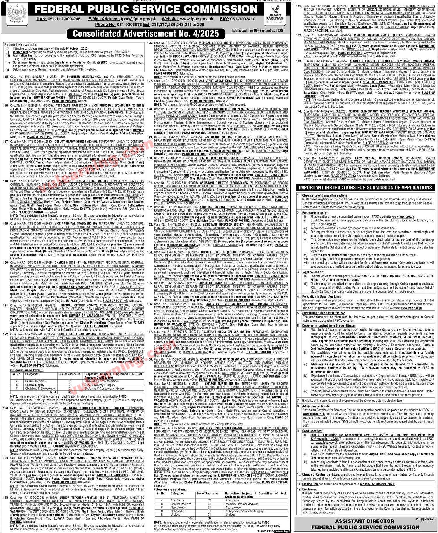FPSC Jobs September 2025 Apply Online Consolidated Advertisement No 4/2025 Latest Job Ad shown on this page is taken from The News Newspaper on 21-09-2025