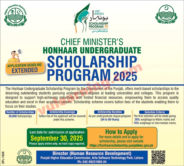 Chief Minister Punjab Honhaar Scholarship Program 2025 Apply Online HEC Latest Job Ad shown on this page is taken from Nawa-e-waqt Newspaper on 21-09-2025