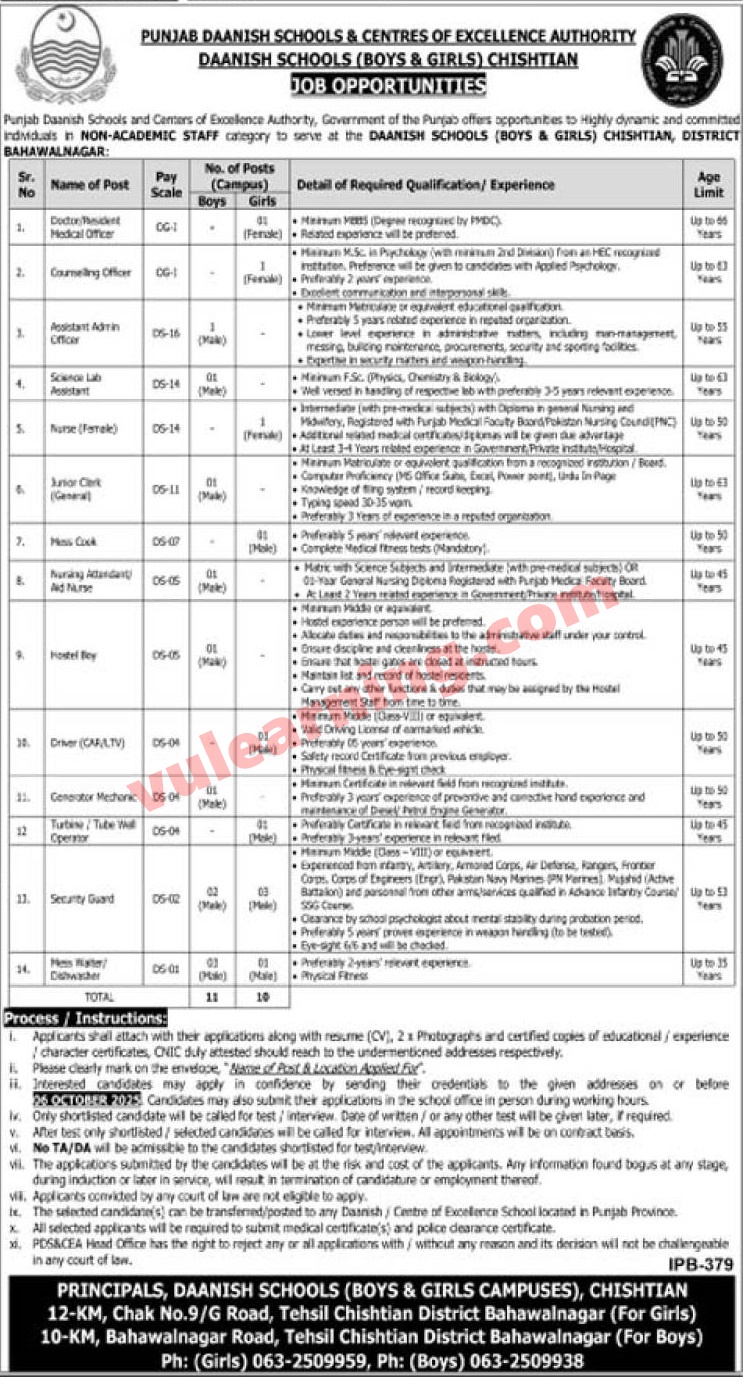 Advertisement of Punjab Daanish School (Boys & Girls) Chistian Jobs 2025 for Non-Teaching Staff-294757