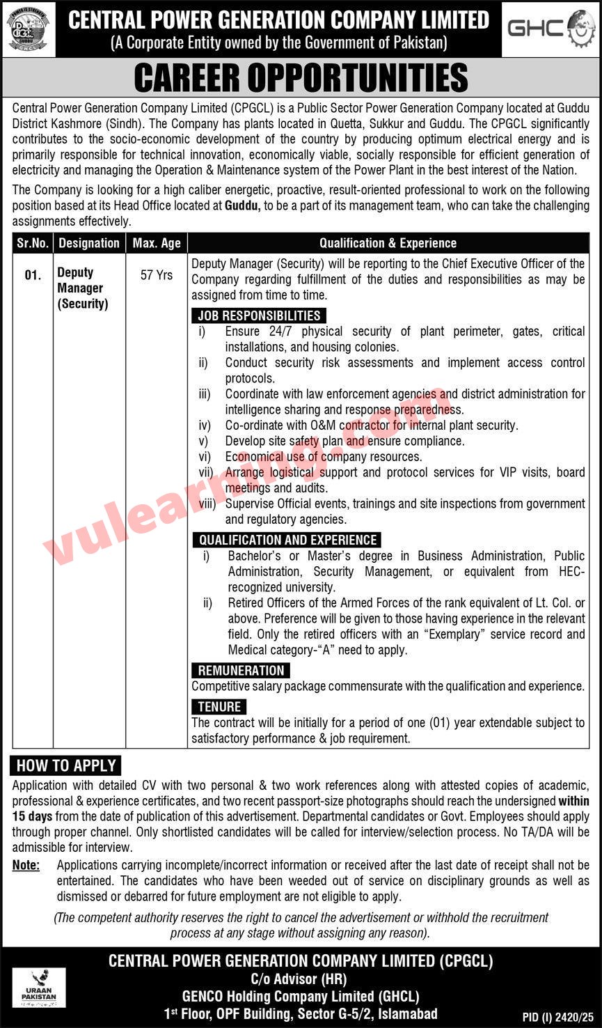 Central Power Generation Company Ltd Jobs 2025 for Deputy Manager CPGCL Job Ad shown on this page is taken from Express Newspaper on 23-09-2025