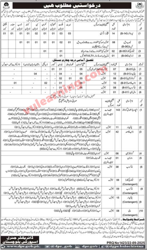 Sports & Youth Affairs Department Balochistan Jobs 2025 for Supervisors, Naib Qasid, Ground Incharge, Khakroob, Chowkidar, Mali & Others Job Ad shown on this page is taken from Jang Newspaper on 23-09-2025