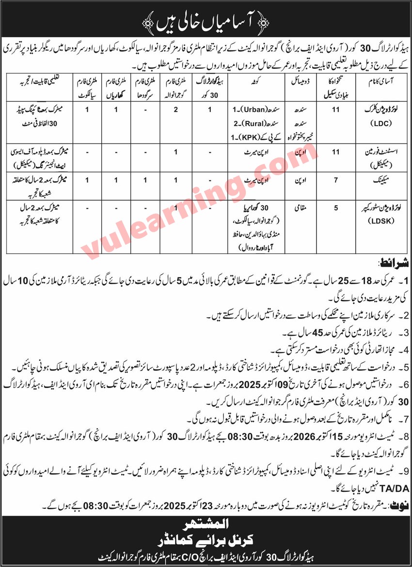 Headquarter Log 10 (RV&F Branch) Gujranwala Cantt Jobs 2025 for Clerks, Mechanics & Others Job Ad shown on this page is taken from Jang Newspaper on 23-09-2025