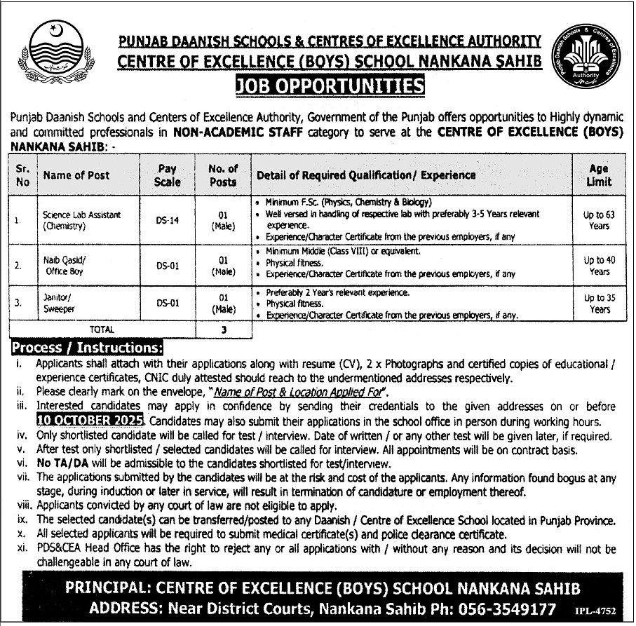 Daanish School (Boys) Nankana Sahib Jobs 2025 for Non-Academic Staff Job Ad shown on this page is taken from Express Newspaper on 24-09-2025