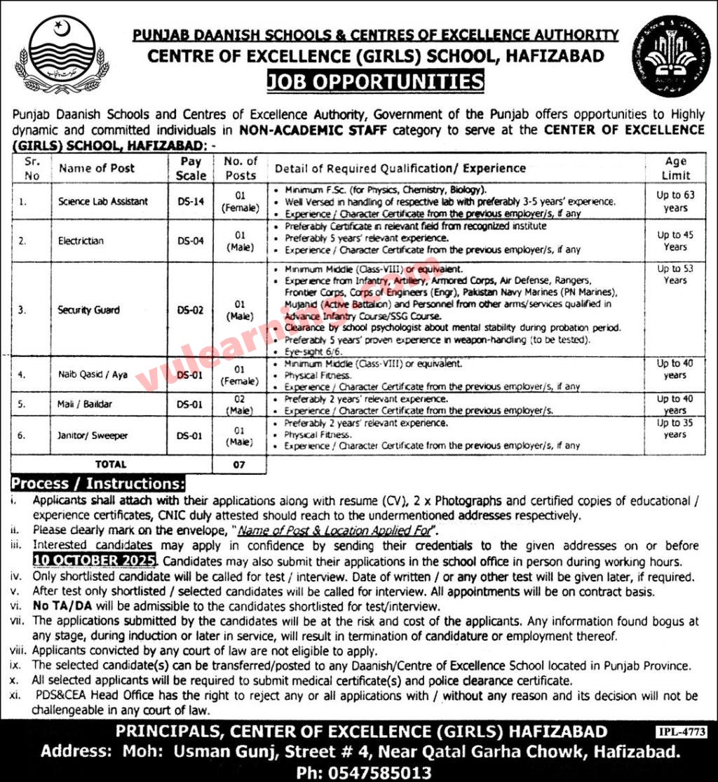 Centre of Excellence Daanish School (Girls) Hafizabad Jobs 2025 for Non-Academic Staff Job Ad shown on this page is taken from Express Newspaper on 25-09-2025