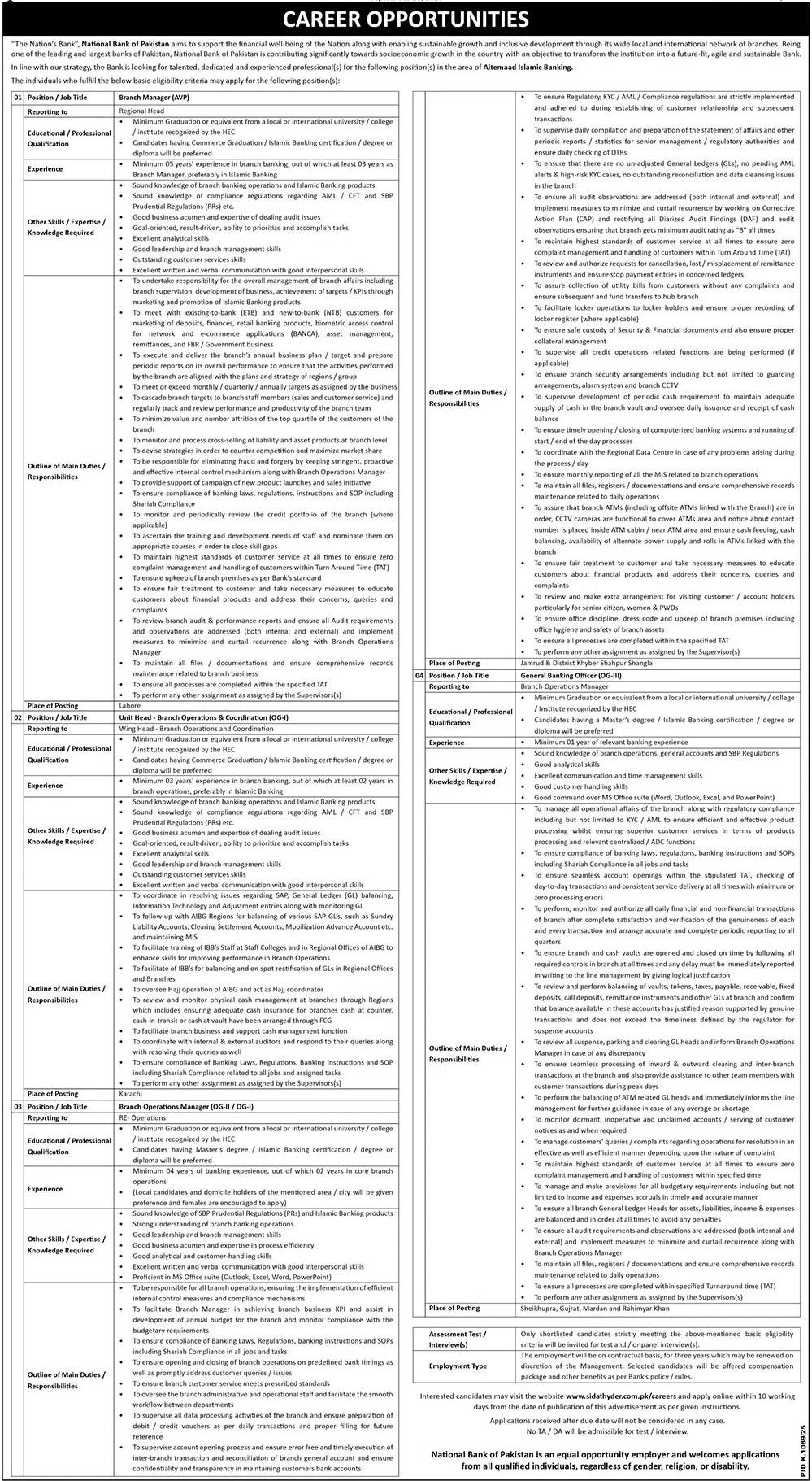 Advertisement of National Bank NBP Jobs 2025 Apply Online for General Banking Officers, Branch Operations Managers & Others Latest -294833