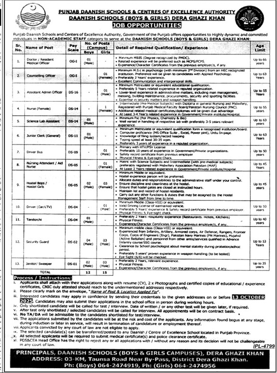 Advertisement of Daanish Schools DG Khan Jobs September 2025 for Security Guards, Drivers, Hostel Boys / Hostel Girls & Others -294839