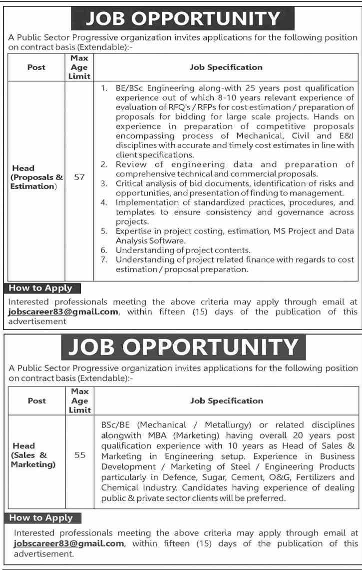 Public Sector Progressive Organization Jobs 2025 for Engineers Advertisement Latest Job Ad shown on this page is taken from Dawn Newspaper on 28-09-2025