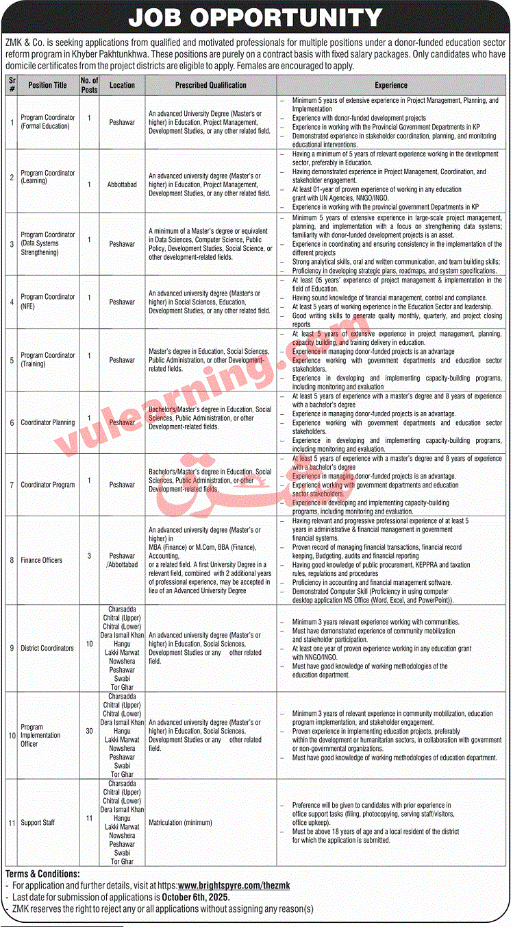 ZMK & Co Jobs 2025 for District Coordinators, Program Implementation Officers, Support Staff & Others Apply Online Job Ad shown on this page is taken from Mashriq Newspaper on 27-09-2025