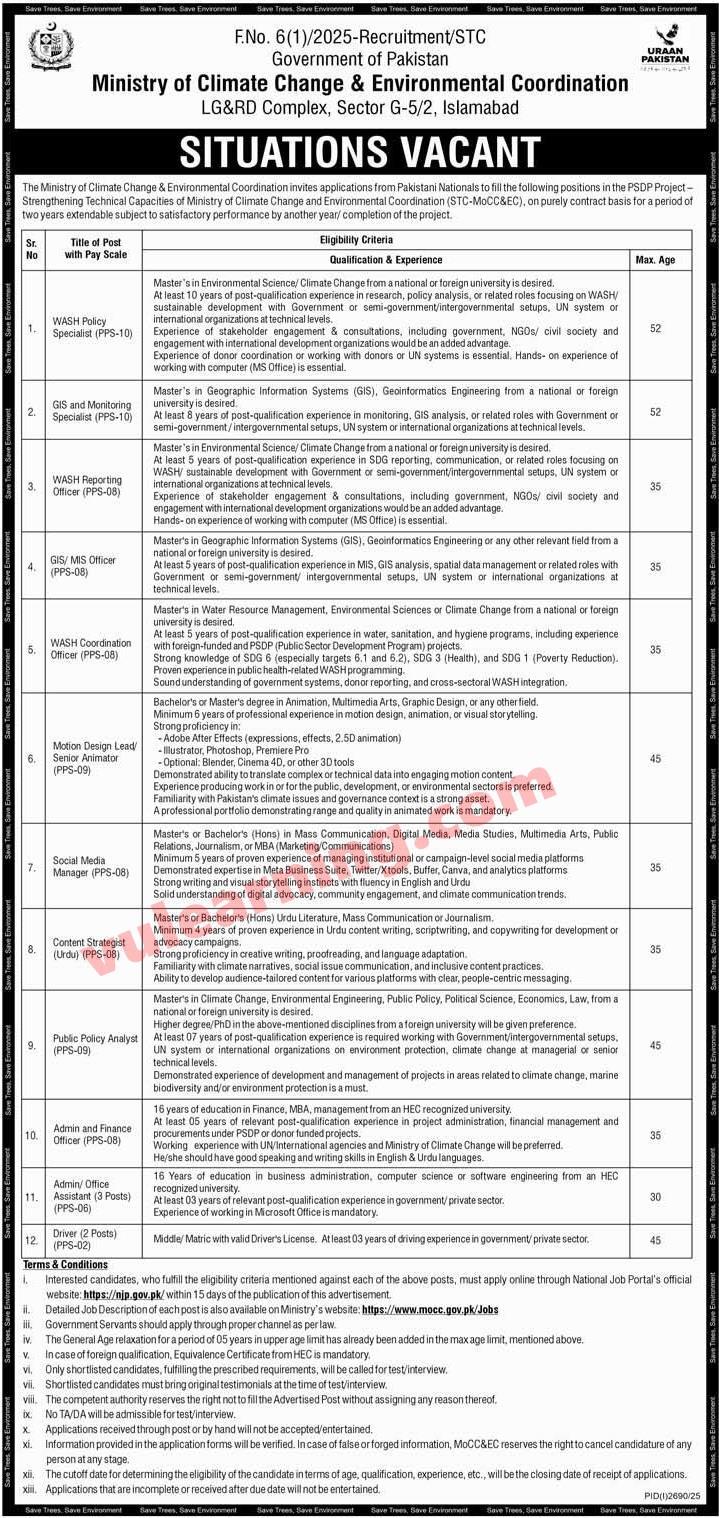 Ministry of Climate Change & Environmental Coordination Islamabad Jobs 2025 Apply Online Job Ad shown on this page is taken from Jang Newspaper on 01-10-2025