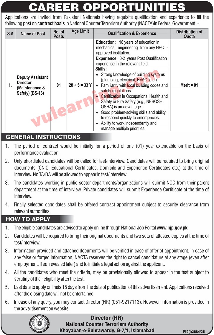 Advertisement of National Counter Terrorism Authority NACTA Jobs 2025 Federal Govt Apply Online-294885
