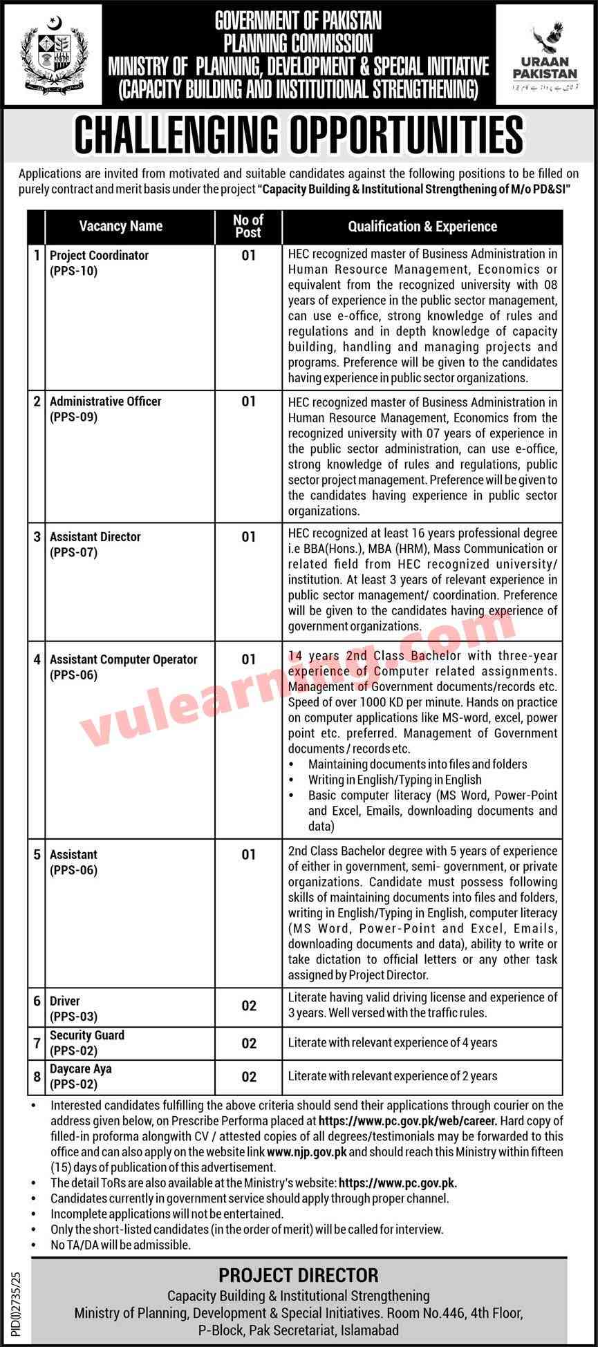 Advertisement of Planning Commission of Pakistan Jobs 2025 for Drivers, Security Guards, Aya, Computer Operator, Assistant & Others-294891