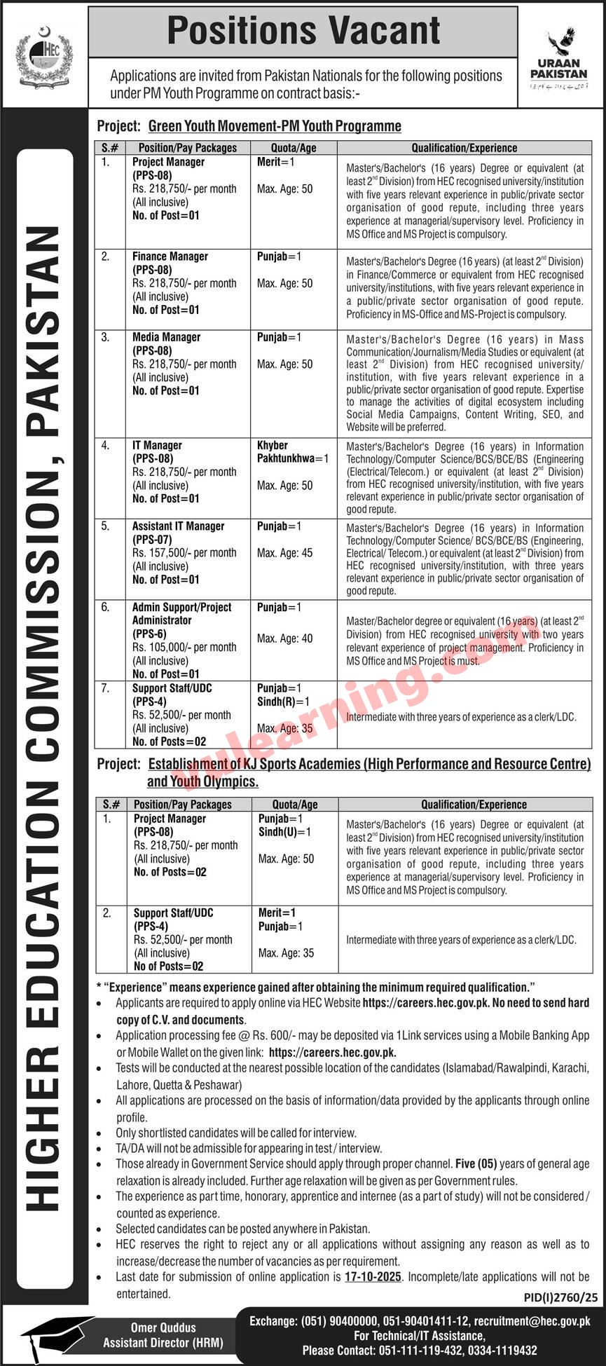 HEC Jobs 2025 Apply Online for Managers, Clerks & Others Higher Education Commission Job Ad shown on this page is taken from Express Newspaper on 03-10-2025
