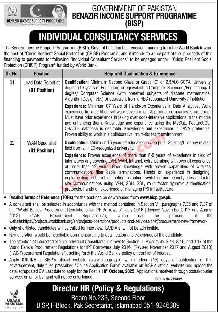 Benazir Income Support Programme BISP Jobs 2025 Apply Online bisp govpk Job Ad shown on this page is taken from Express Newspaper on 04-10-2025