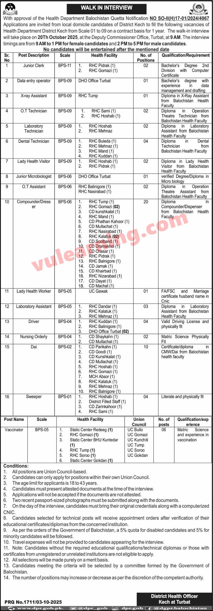 Health Department Balochistan Jobs 2025 for Jr Clerks, Compounders, Drivers, Vacciantors, Dai & Others Wal-In Interview Job Ad shown on this page is taken from Express Newspaper on 04-10-2025