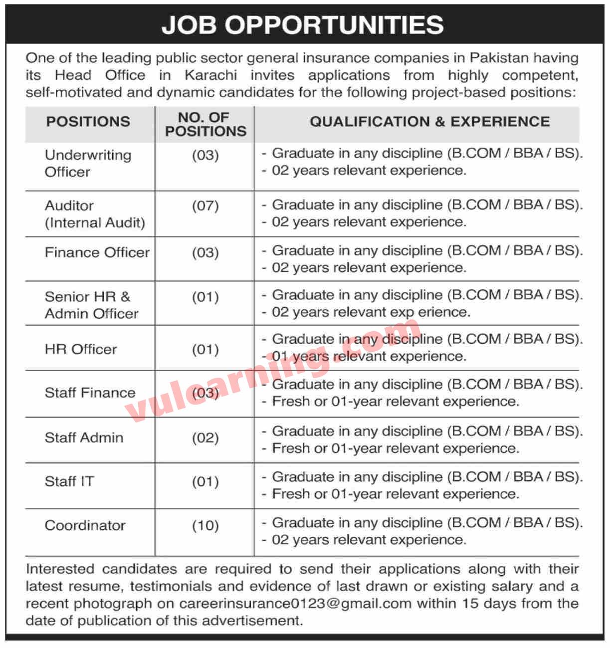 Public Sector Insurance Company Jobs in Karachi 2025 for Auditors, Coordinators & Others Latest Job Ad shown on this page is taken from Dawn Newspaper on 05-10-2025