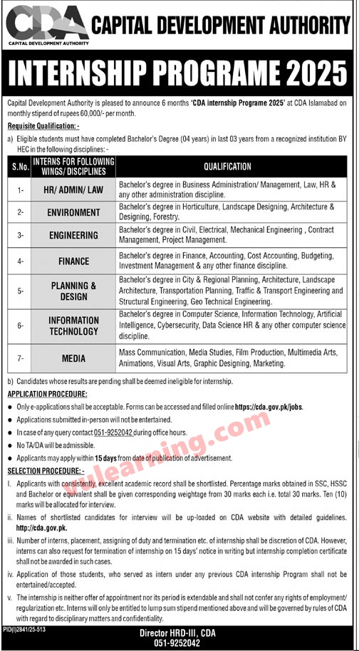 CDA Internship Program 2025 Apply Online Capital Development Authority Jobs Latest Job Ad shown on this page is taken from Express Newspaper on 05-10-2025