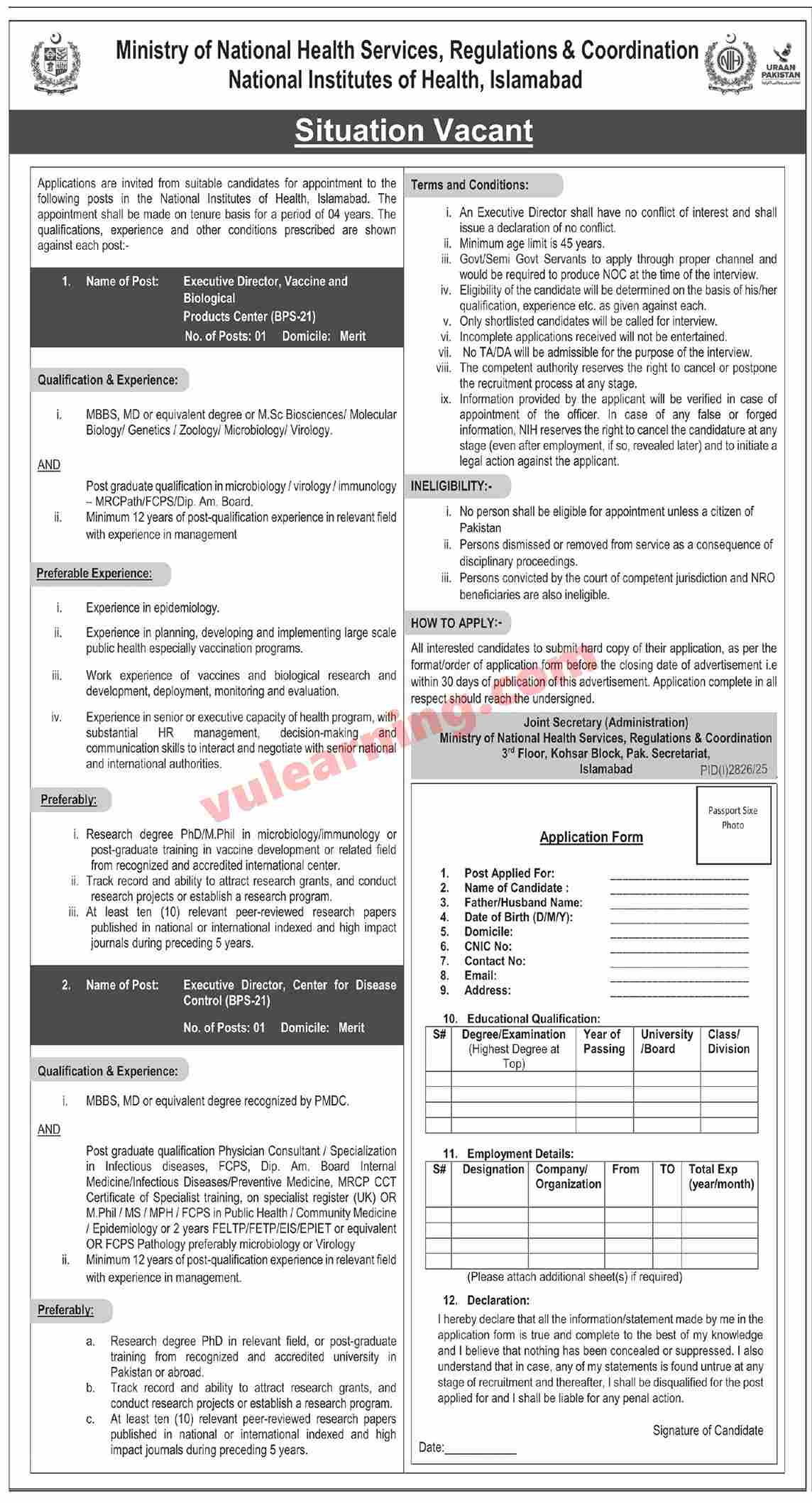 Advertisement of Ministry of National Health Services Jobs 2025 for National Institute of Health Islamabad-294929