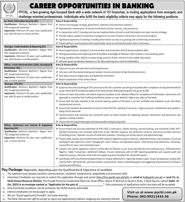 PPCBL Jobs 2025 Apply Online Punjab Provincial Cooperative Bank Limited Latest Job Ad shown on this page is taken from Jang Newspaper on 05-10-2025