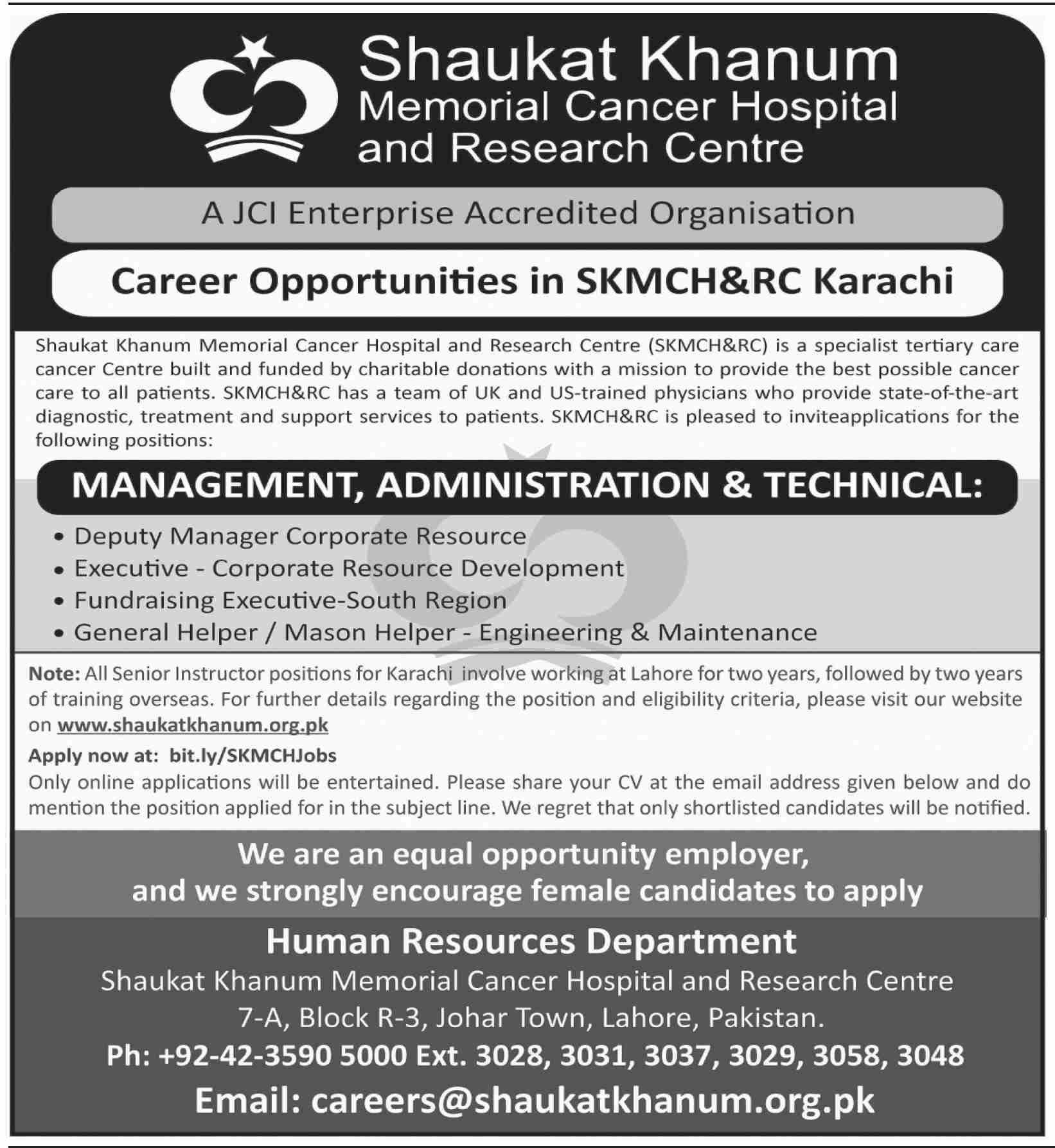 Advertisement of Shaukat Khanum Hospital Karachi Jobs 2025 SKMCH&RC Apply Online-294959