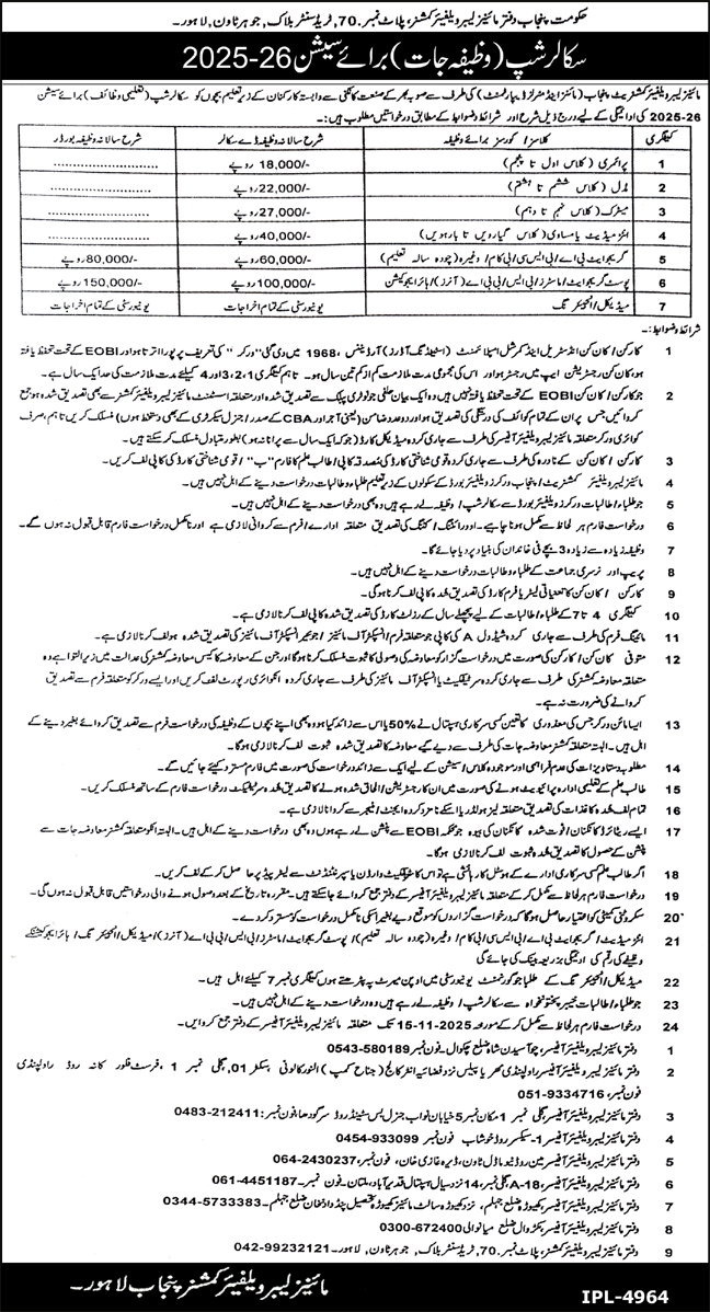 Mines Labour Welfare Organization Punjab Scholarships 2025-2026 for Children of Mines Workers Latest Job Ad shown on this page is taken from Nawa-e-waqt Newspaper on 05-10-2025
