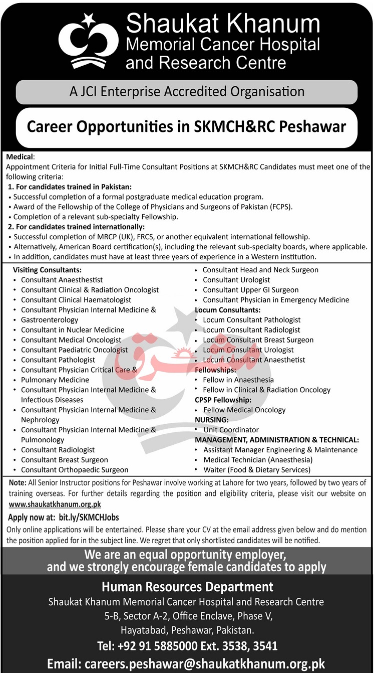 Advertisement of Shaukat Khanum Hospital Peshawar Jobs 2025 Apply Online SKMCH&RC-294962