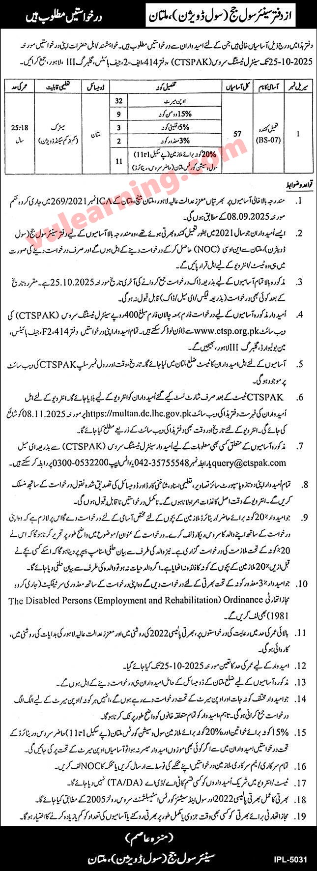 District Courts Multan Jobs 2025 for 57 Tameel Kuninda BPS-07 CTSPAK Apply Online Job Ad shown on this page is taken from Express Newspaper on 08-10-2025