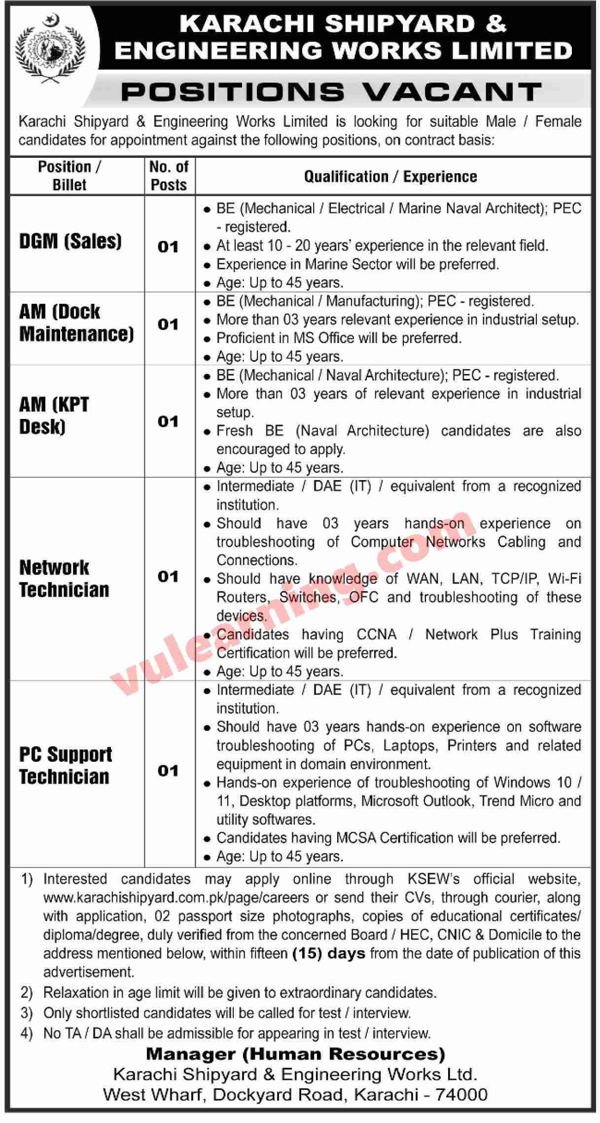 KSEW Jobs Apply Online for Assistant Managers, Technicians & Others Karachi Shipyard & Engineering Works Job Ad shown on this page is taken from Dawn Newspaper on 12-10-2025