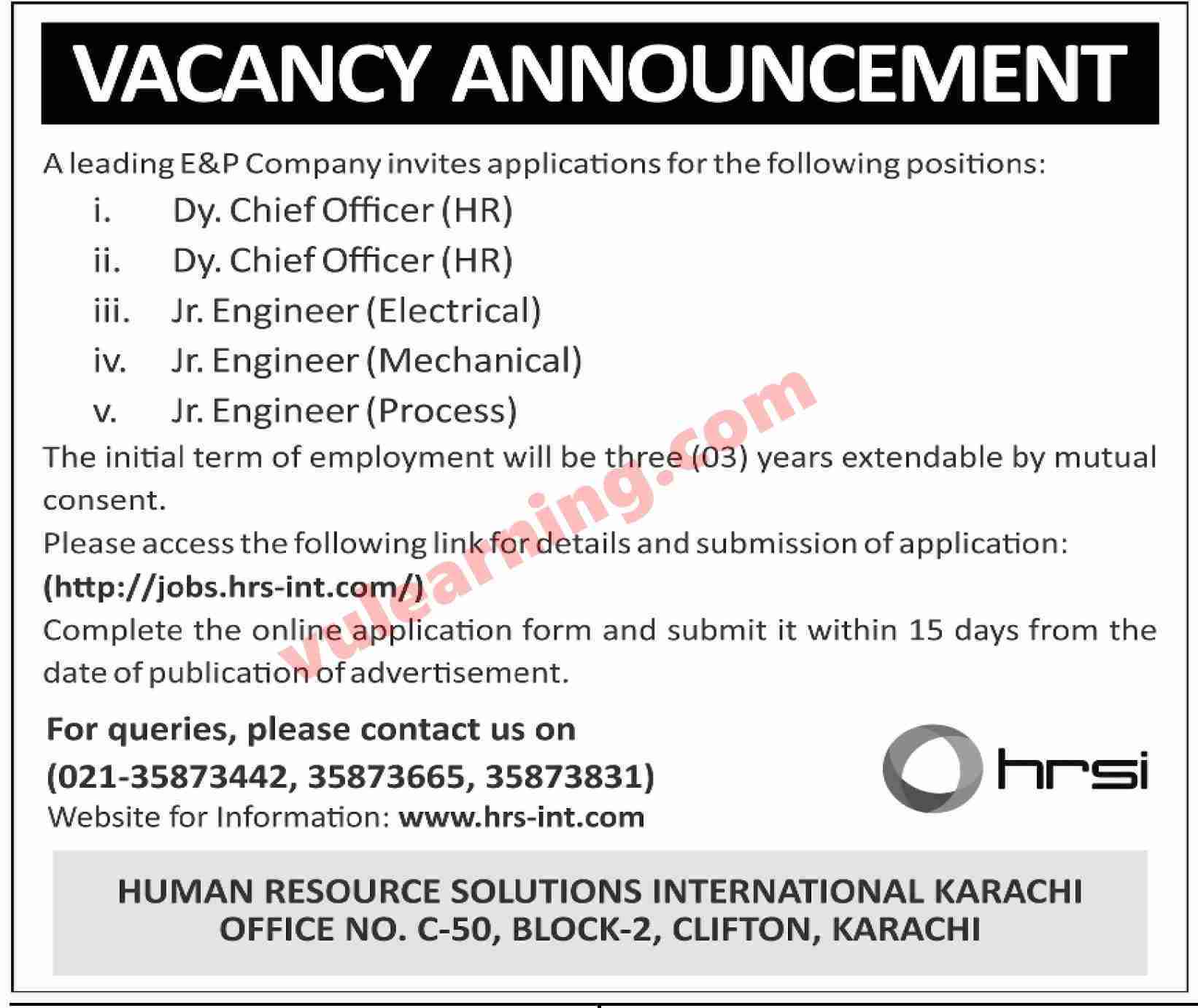 Leading E&P Company Jobs 2025 Apply Online Junior Engineers & Others HRSI Job Ad shown on this page is taken from Dawn Newspaper on 12-10-2025