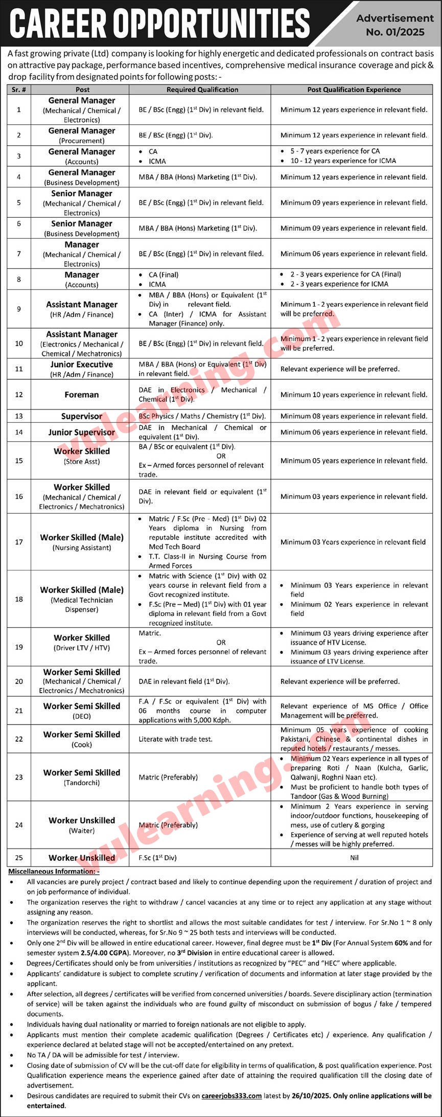 Advertisement of Careerjobs333 Jobs 2025 Apply Online for Assistant Mangers, Managers, Supervisors, Workers & Others-295014