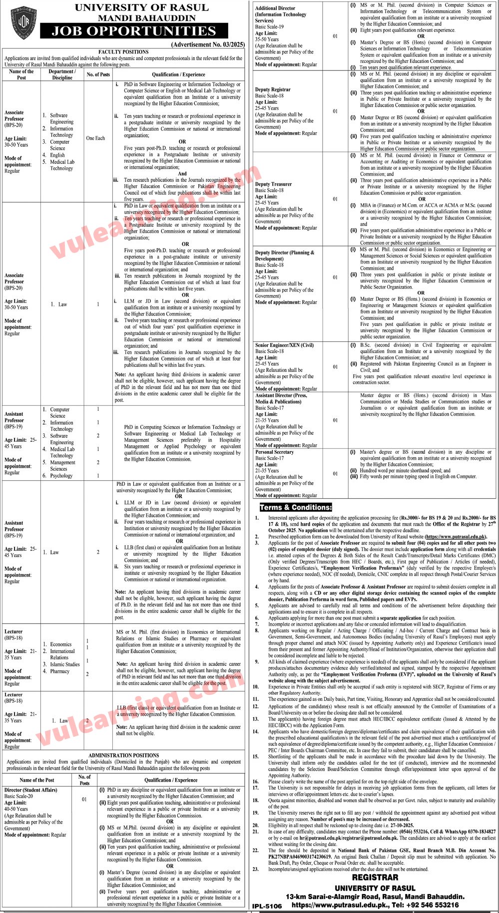 University of Rasul Mandi Bahauddin Jobs 2025 for Teaching Faculty & Non-Teaching Staff Latest Job Ad shown on this page is taken from Jang Newspaper on 12-10-2025