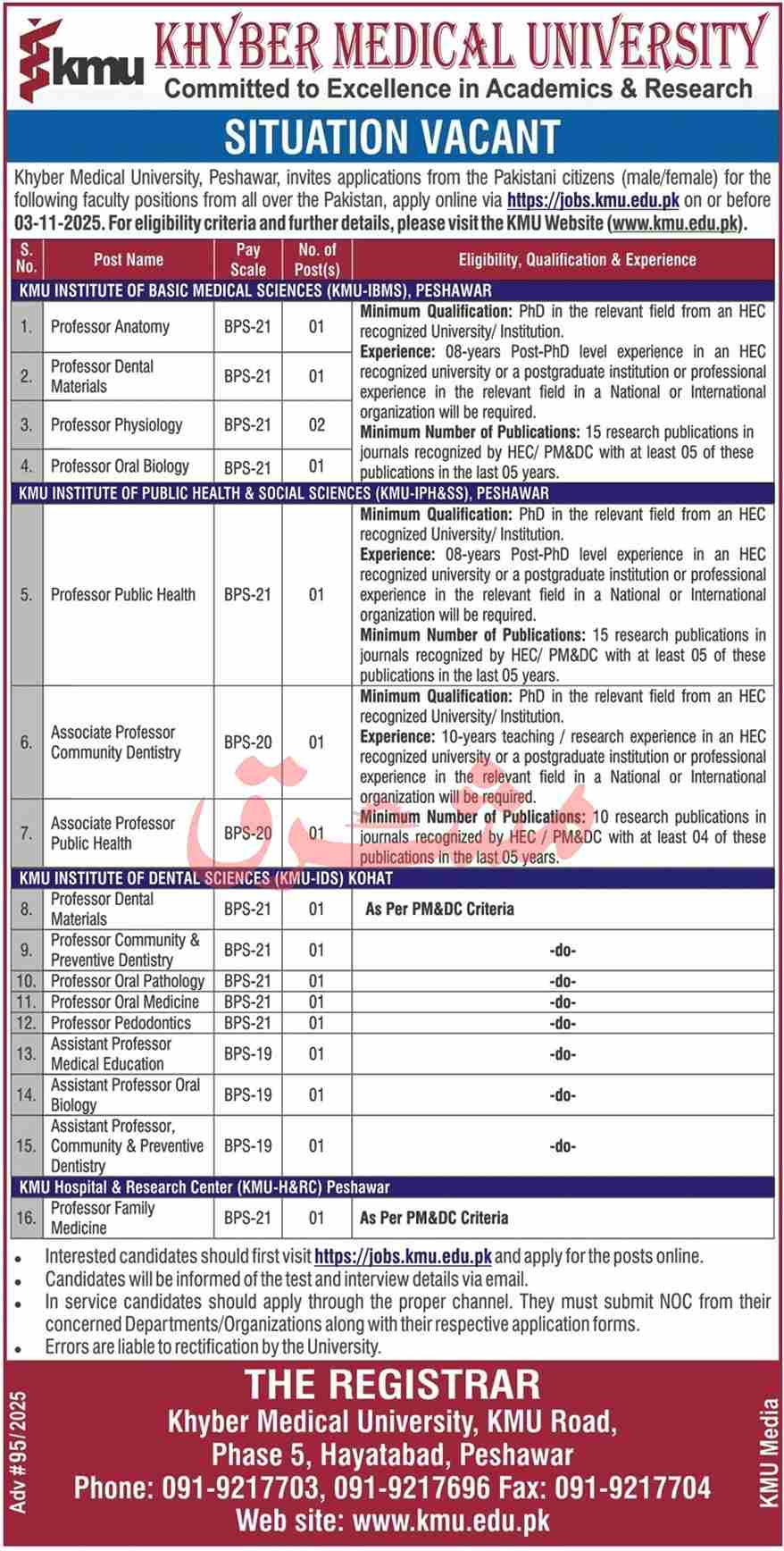 Khyber Medical University KMU Jobs 2025 Apply Online for Institute & Hospital Vacancies Job Ad shown on this page is taken from Mashriq Newspaper on 14-10-2025