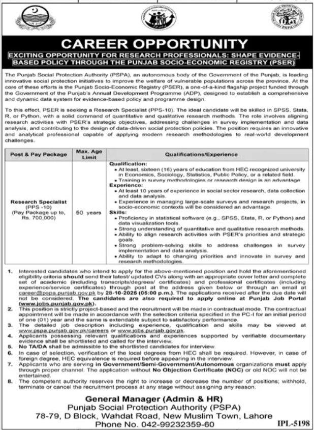 Advertisement of Punjab Social Protection Authority Jobs 2025 PSPA Punjab Govt Lahore Apply Online-295055