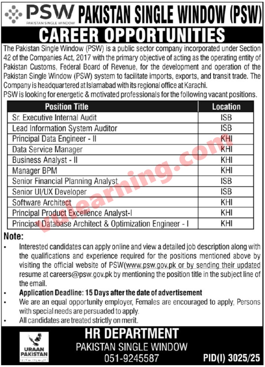 Advertisement of Pakistan Single Window PSW Jobs 2025 Apply Online FBR Pakistan Customs-295056