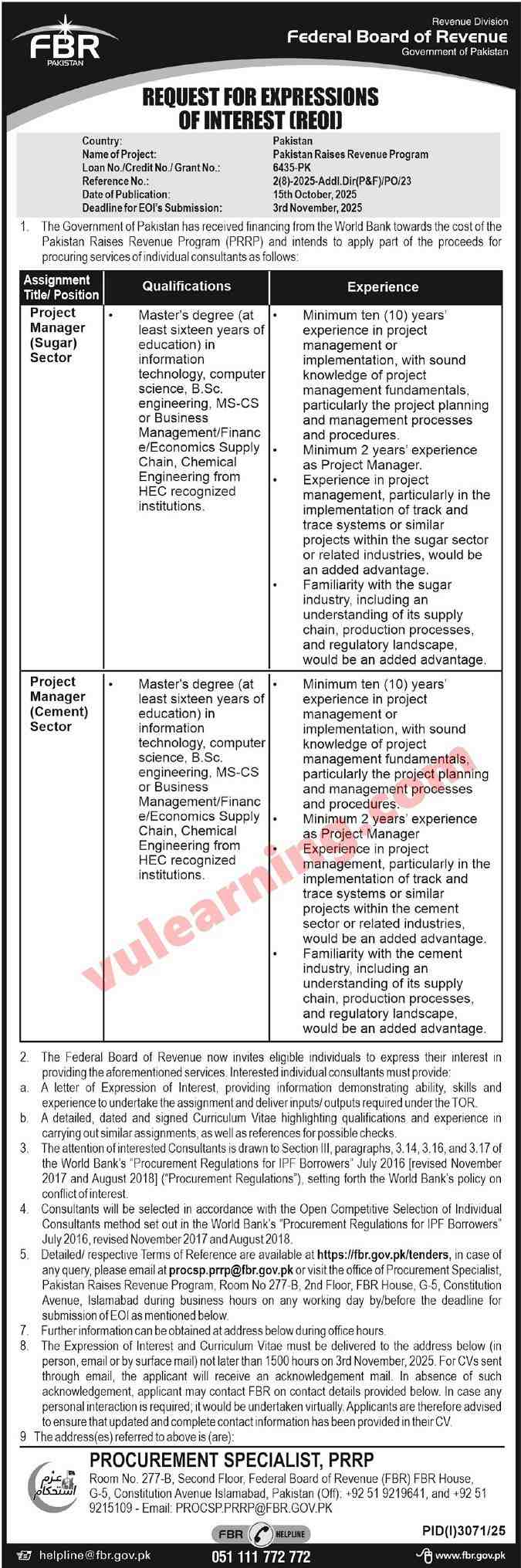 Federal Board of Revenue FBR Jobs 2025 Pakistan Raises Revenue Program NRRP Job Ad shown on this page is taken from Express Newspaper on 15-10-2025