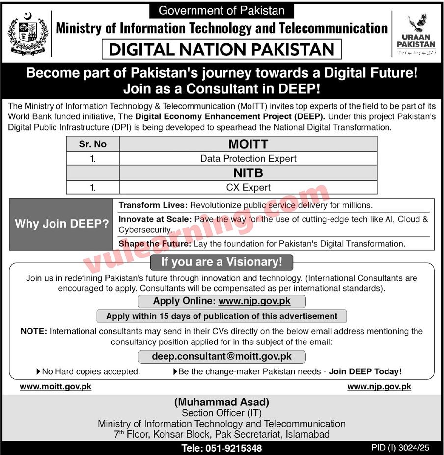 Advertisement of Ministry of IT & Telecom Islamabad Jobs 2025 for MoITT Apply Online-295058