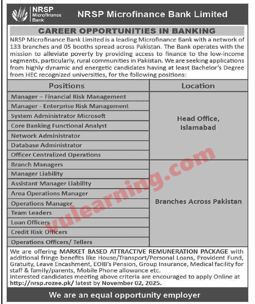 NRSP Microfinance Bank Jobs 2025 Apply Online for Loan Officers, Branch Managers & Others Latest Job Ad shown on this page is taken from Dawn Newspaper on 19-10-2025