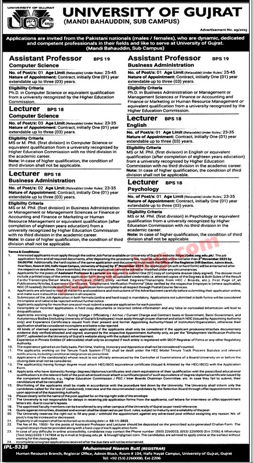 Advertisement of University of Gujrat Jobs 2025 for Lecturers & Assistant Professors Apply Online-295088