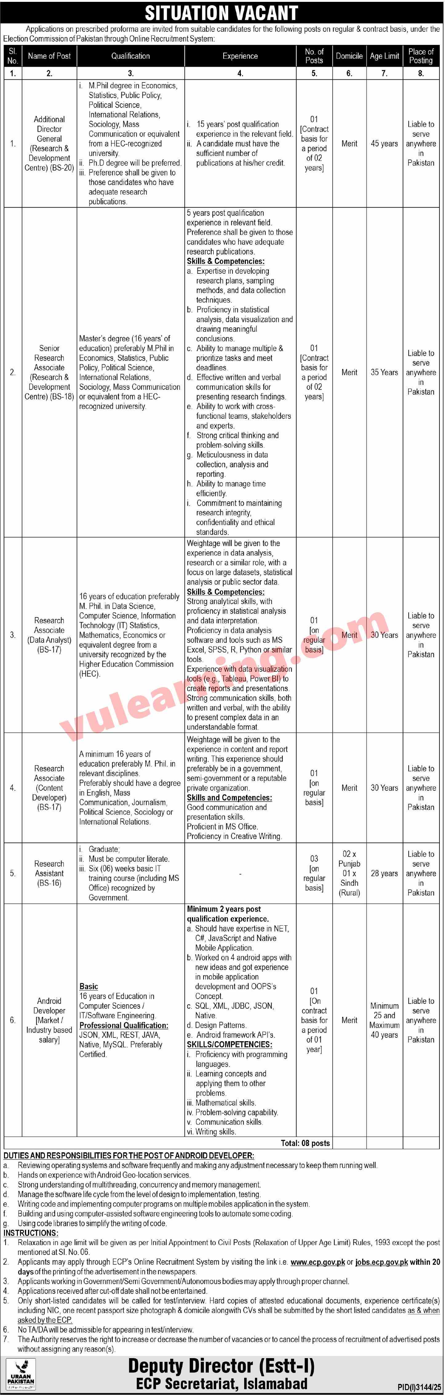 Advertisement of Election Commission of Pakistan Jobs 2025 Apply Online ECP Islamabad for Research Assistants & Others -295103