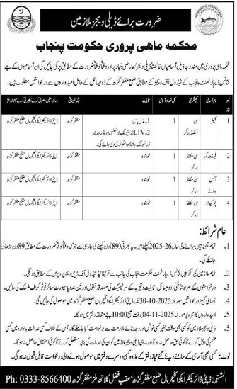 Advertisement of Punjab Fisheries Department Jobs 2025 for Office Boy, Cleaner, Field Worker & Chowkidar-295154
