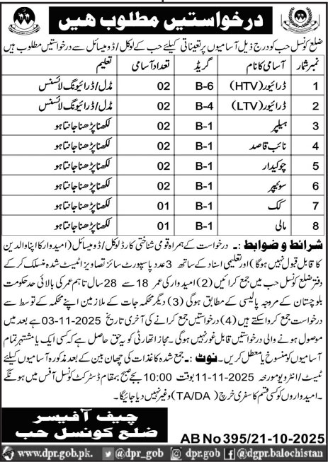 District Council Jobs 2025 for Drivers, Helpers, Naib Qasid, Chowkidar, Sweeper & Others Job Ad shown on this page is taken from Jang Newspaper on 24-10-2025